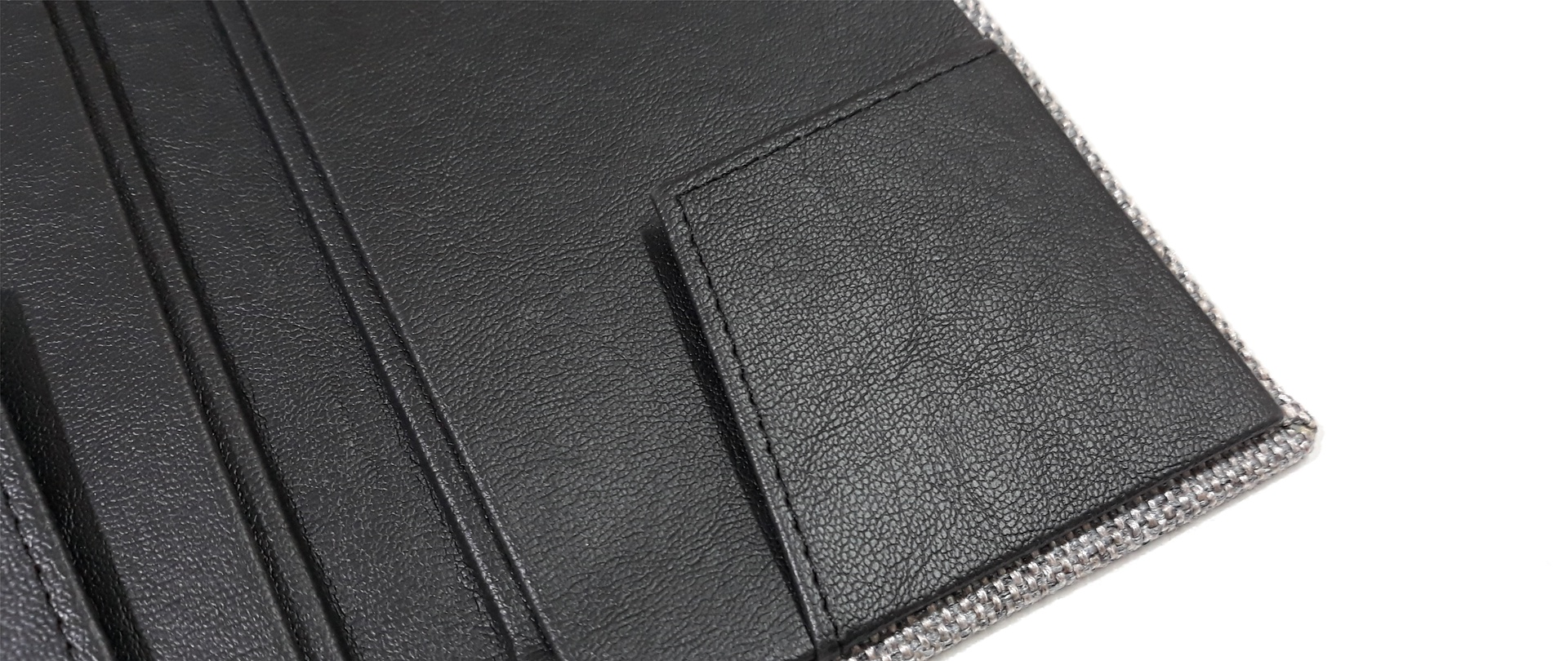 - Inside there is a leather corner pocket for the bill, one pocket for cash and a leather card slot.