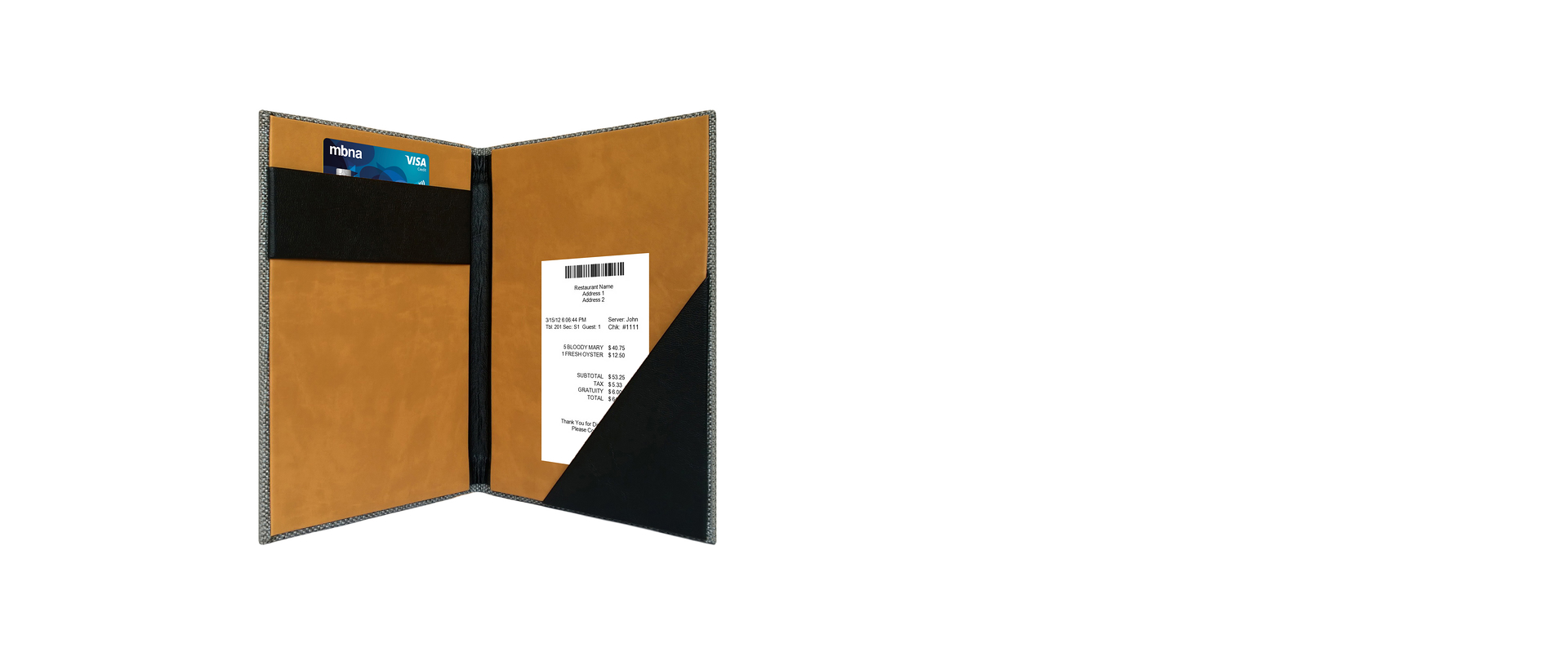 • This chic fabric & leather check presenter is perfect for hotels, restaurants, coffee shops, bars &....