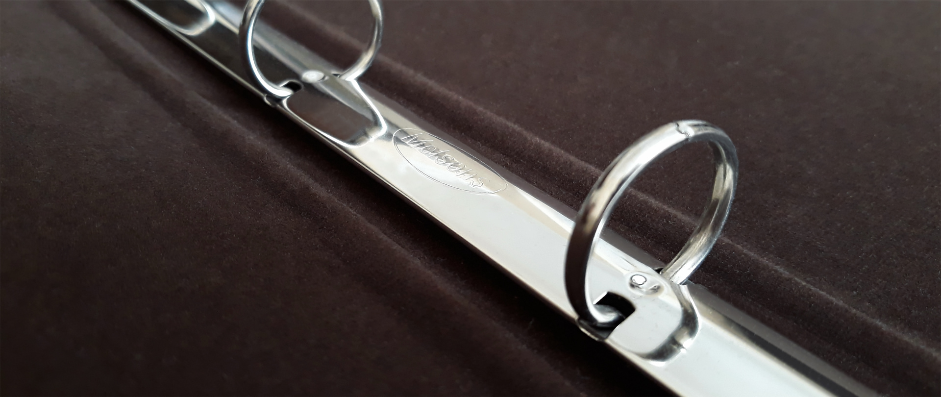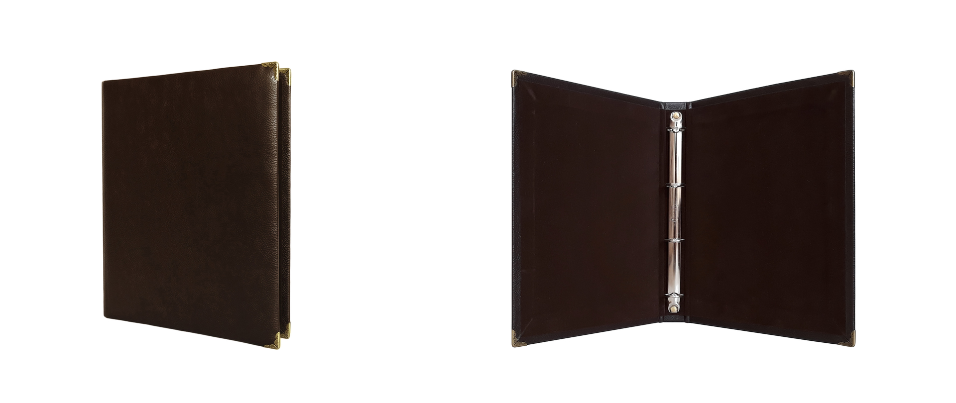 • Inside there is a nice chrome ring binder for holding pages.