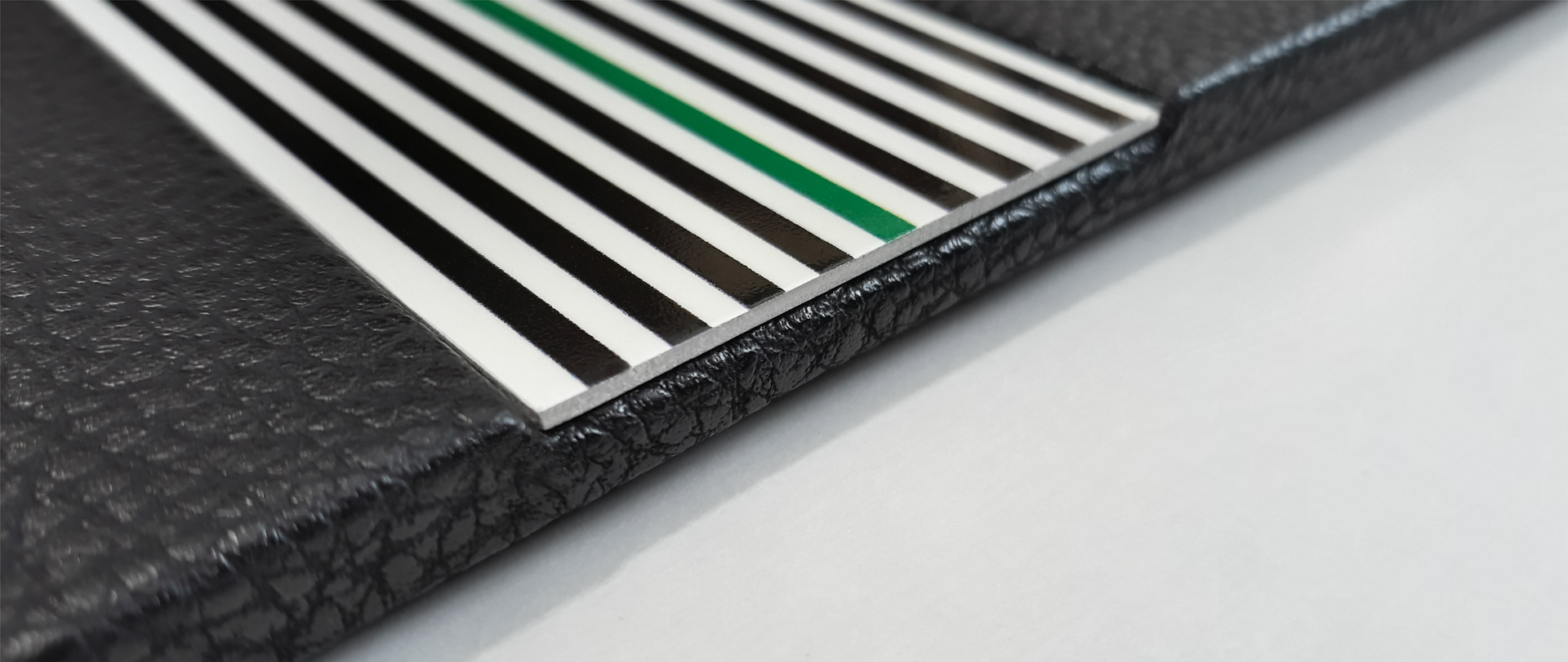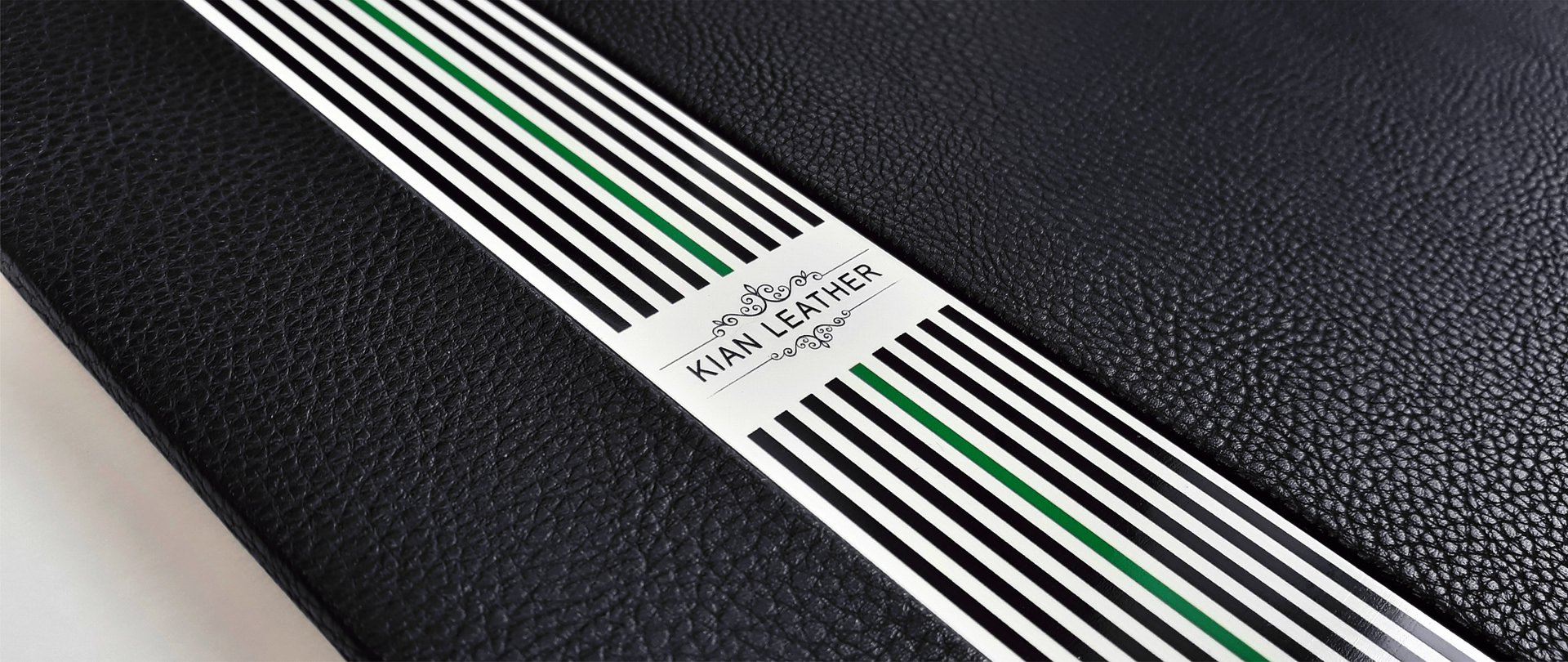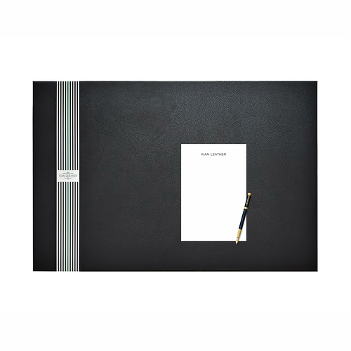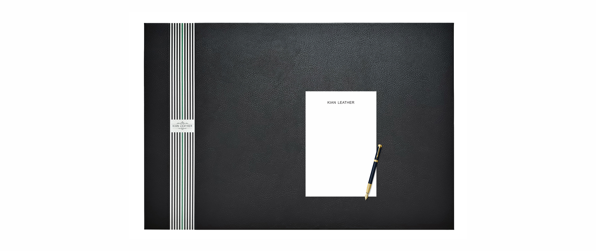 - Luxury & modern leather desk pad with permanently printed aluminium logo