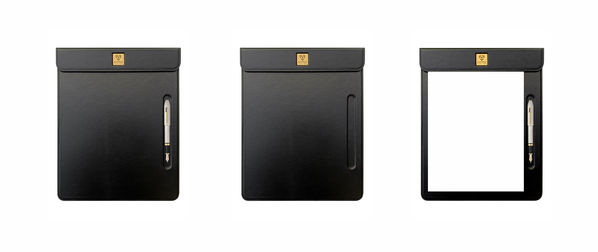 - Modern leather desk pad with magnetic fold to hold your A4 papers.