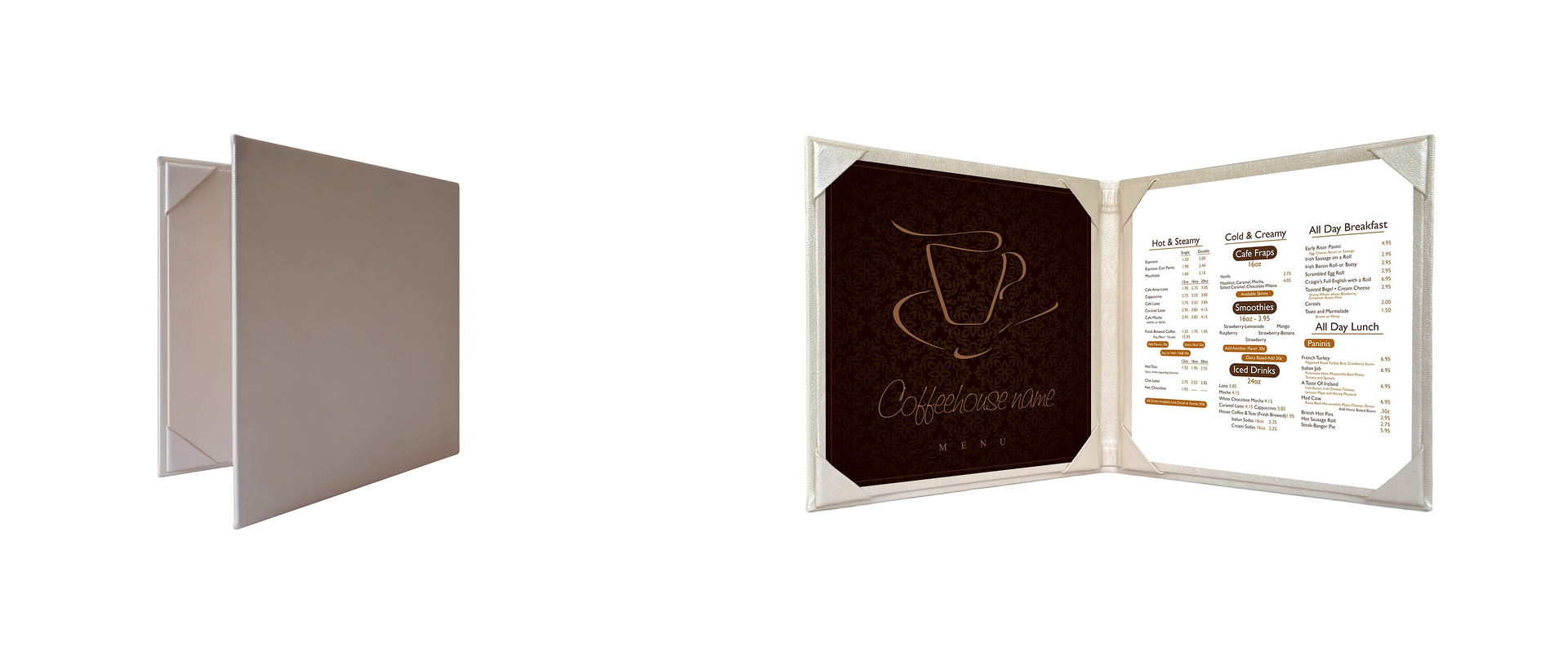 • These menu covers are made to order. Please allow 7-10 Working Days for manufacturing.