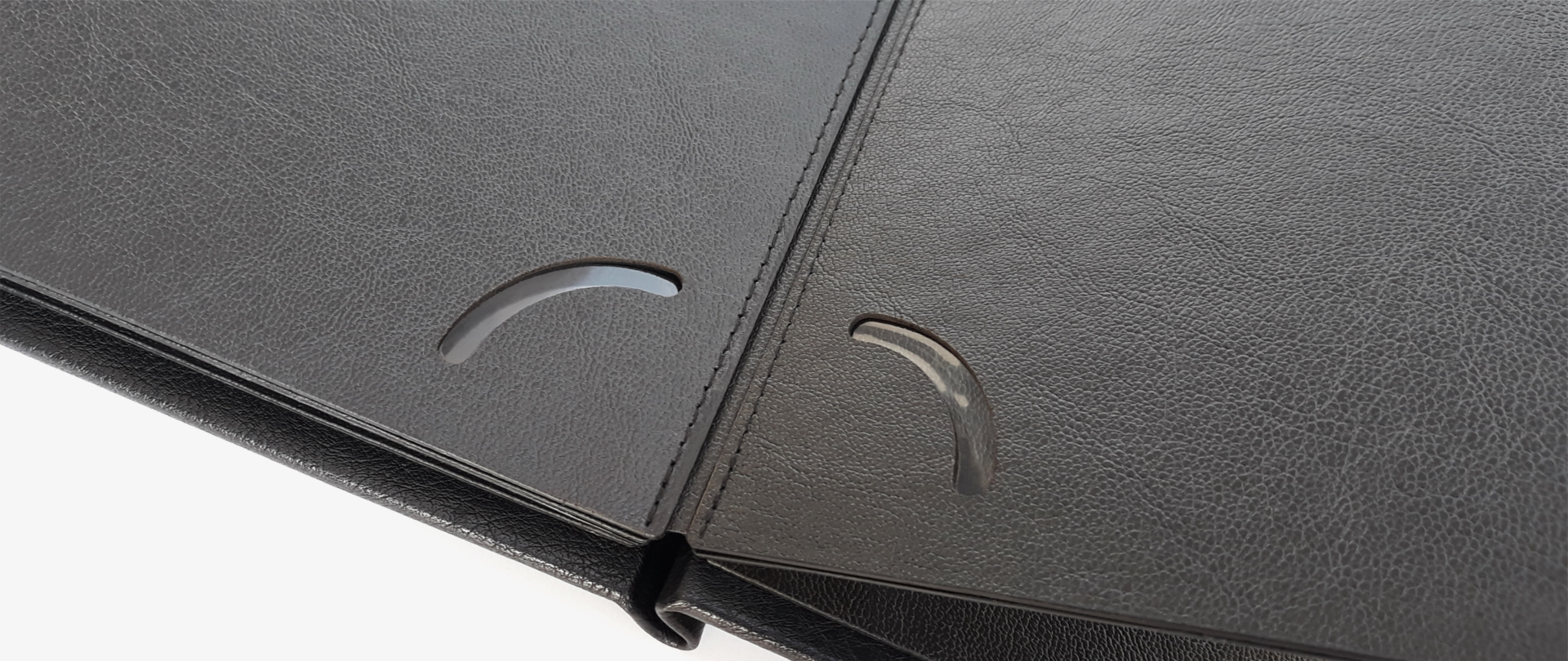• Your logo can be debossed, engraved on steel, permanently printed on metal logo and foil stamped.