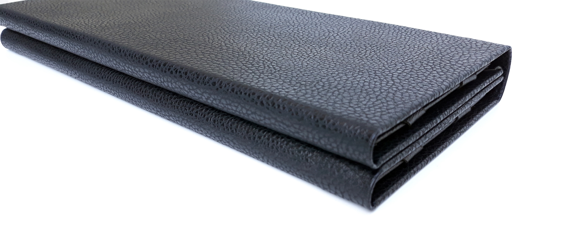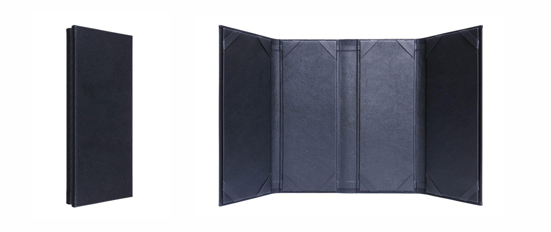 - It has 16 leather ribbon-like bands inside for holding the menu inserts