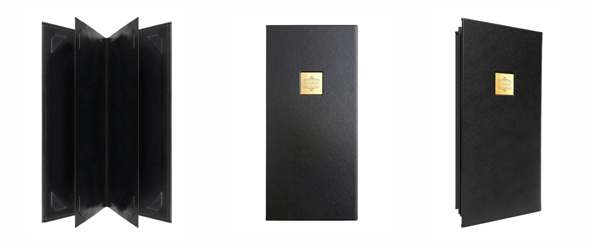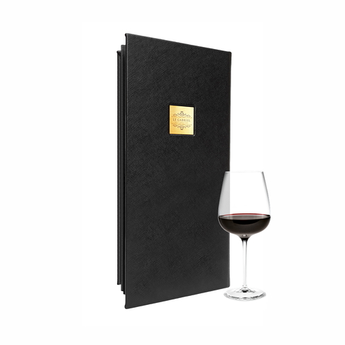 • Inside there are modern tabs for inserting the printed menu sheets.