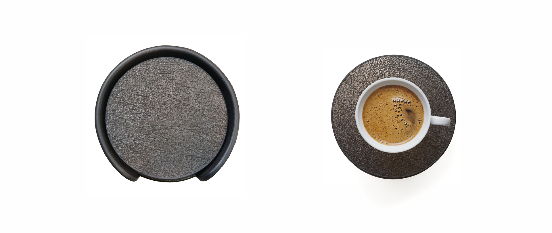 - Doubeled leather, soft coaster